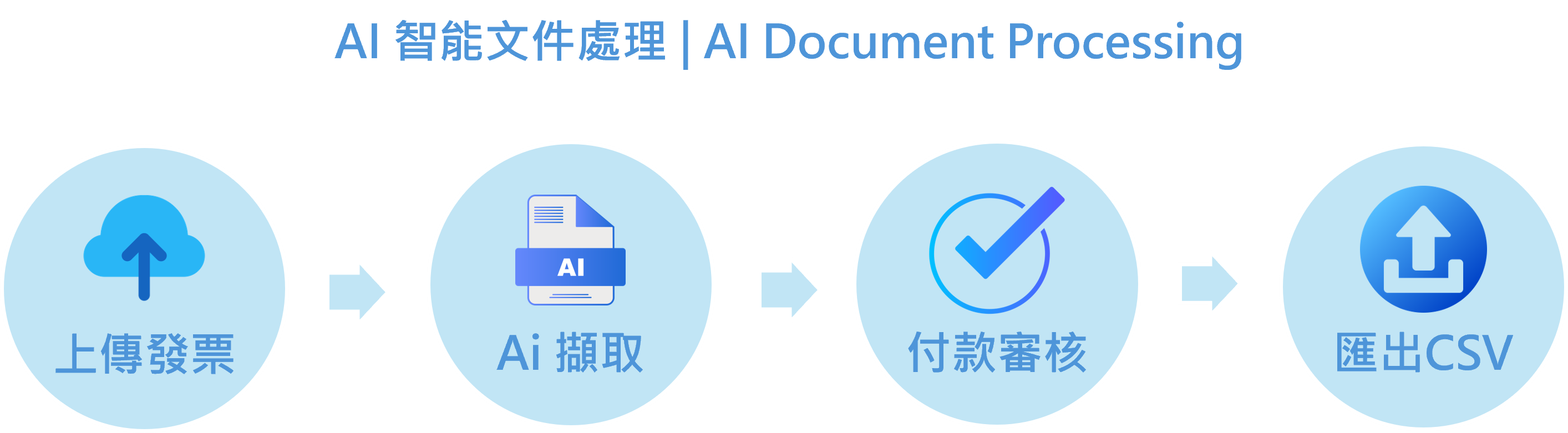 透過「AI 智能文件處理技術」,企業得以將過去只能人工處理的發票類型-手寫發票、熱感應發票、機打直式發票,一併納入自動化的付款申請流程中,加速審核,並匯出至財會系統進行後續付款流程。